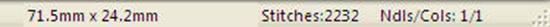 To cancel measuring, click again on the Measure button in the toolbar, or click the Selection Tool (arrow) in the toolbar.Items that are selected also have their size, stitch count and color count shown in the status bar. If nothing is selected, then the size and counts for the entire Design Page will be shown.