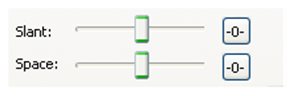 The slant of the monogram and the spacing of the monogram letters are controlled with the Slant and Space slider controls. If you use these controls and want to return the monogram to its default settings, simply click the zero control. This will restore the default setting. The Slant gives an italic effect to the monogram.