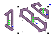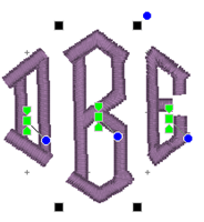 A Closer Look:You can manipulate text to fit virtually any kind of path using the handles for the text design as well as the individual letter and rest-of-line handles. The letters have additional control handles which display when the monogram is selected: