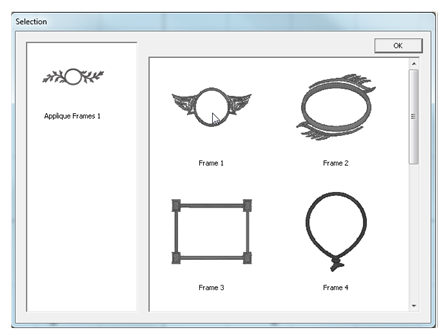 the selection dialog. The dialog has a scrolling list on the left that shows the