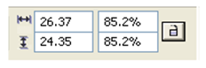 The width and height of a selected design element can be precisely set by entering the desired value in the width and height text box and pressing the enter key. If an exact size is not known, the element can be sized as a percentage of its original size by entering a percent value in the percent text box and pressing the enter key.