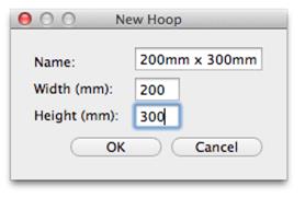 The width and height fields are self-explanatory, and you can name your hoop as desired. Hoop names should be unique. Note that in the Everyday version of Embrilliance you cannot create or edit Multi-Position hoops, but you can do this in Advanced.