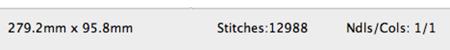 To cancel measuring, click again on the Measure button in the toolbar, or click the Selection Tool (arrow) in the toolbar. Items that are selected also have their size, stitch count, and color count shown in the status bar. If nothing is selected, then the size and counts for the entire Design Page will be shown.