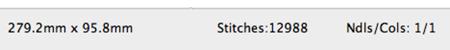 The status bar is located at the bottom of the program window. Size, stitch count and color count information appear on the right side of the status bar. If you have no design selected, then the display will contain information about the entire design page. If you have something selected, then the information contains the word, ‘Selected’ and represents only those selected items.