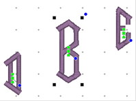 Clicking on the green center handle will display three additional handles. These handles give a wide range of control over the positioning of the letters. The handles work on the selected letter and all letters to the right of the selected letter. Let’s take a closer look at these handles: