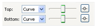 The envelope (containing top and bottom outlines) of the lettering (single or multi-line) can be individually customized. The Envelope Type box and Envelope Slider control the envelope. There is an Envelope Slider control for the envelope top and there is an envelope slider control for the envelope bottom. There are four styles of envelope: Curve, Grow, Peak and Shrink.