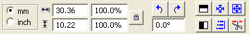 Sizing and positioning of design elements can also be accomplished using the Size and Position controls panel located on the Tool pane. The first control on this panel sets the unit of measure for the design page. The choices are millimeters and inches.