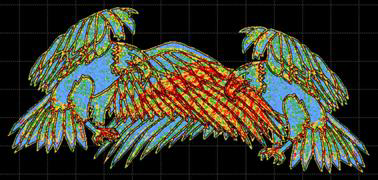 Where the design shows bright red in color, there are six layers or more of thread, which undoubtedly will produce poor embroidery results.