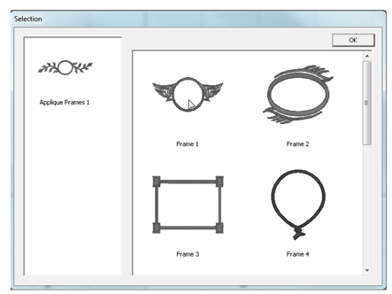 right. Select a design and click OK. The design will be placed in the center of