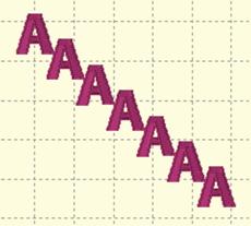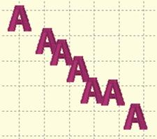 Distribution is different from alignment. Distribution places designs equidistant across a distance. This is useful if you want to make regular patterns, such as a tiled design. If you would like items distributed across an area, move the first and last items to the outside areas that you want to fill. In this example, the (top, left) ‘A’ and the (bottom, right) ‘A’ make the design size. But notice how the ‘A’ designs between those are not placed regularly? Distribute will make those ‘A’s into an orderly row: