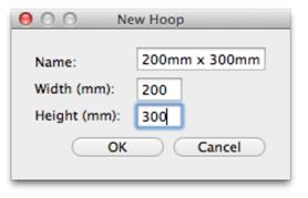 The width and height fields are self-explanatory, and you can name your hoop as desired. Hoop names should be unique. Note that in the Everyday version of Embrilliance you cannot create or edit Multi-Position hoops, but you can do this in Advanced.