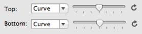 The envelope (containing top and bottom outlines) of the lettering (single or multi-line) can be individually customized. The Envelope Type box and Envelope Slider control the envelope. There is an Envelope Slider control for the envelope top and there is an envelope slider control for the envelope bottom. There are four styles of envelope: Curve, Grow, Peak and Shrink.
