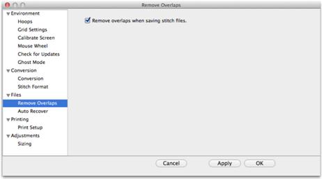 When creating a composition, you can arrange designs so that they overlap. Embrilliance automatically removes the overlapped stitches using our patented system. When you save your design, the stitches will be automatically removed. If you prefer this not to happen, uncheck the box and click Apply.