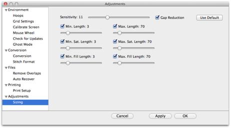 That recalculation process is complex and difficult, so there are some settings you can adjust to achieve optimal results.The sensitivity control is used to control how well the program discovers fills and satin stitches. If you have a design that has a lot of manually created stitch effects, then you may want the sensitivity higher, whereas normal designs that are digitized with objects like fills probably don’t need so much sensitivity, especially if there is blending going on.