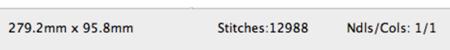 The status bar is located at the bottom of the program window. Size, stitch count and color count information appear on the right side of the status bar. If you have no design selected, then the display will contain information about the entire design page. If you have something selected, then the information contains the word, ‘Selected’ and represents only those selected items.