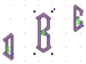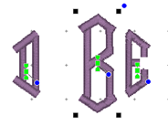 Clicking the center green handle also allows you to change the color of that letter only, leaving the others untouched. Use the Colors page in the Property Sheet to change the letter color, as you would change any color layer in a design.