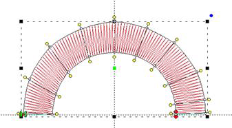 What you’ll do is create the outline by clicking a point on the ‘left’ side of the satin column, then a point on the ‘right’ side. You keep going, left, right, left, right until you have completed the shape. It will look like you have drawn a ladder.