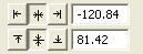You can precisely position designs using these buttons. The three buttons on the (top, left) control the display of the x-axis position. There are Left, Center and Right, which means that when you have the Left button set, the display will be of the left edge of the design.