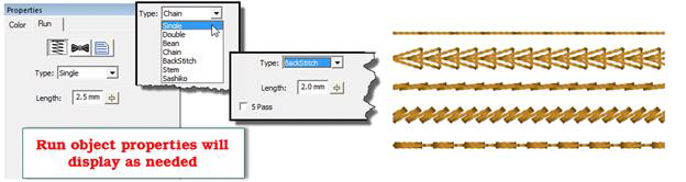 Like the chain stitch, the Back stitch and Stem stitch are also traditional heirloom stitches. As you select these stitches, you will see properties appear for them.