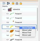 You can also drag and drop items in the tree to re-sequence them. Dropping an item (let’s call it ‘B’) on another (called ‘A’) will place that dropped ‘B’ item right after ‘A’ in the sequence. If you drag an object onto the design icon, then that drop will be placed at the head of the design.