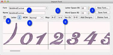 For this reason, we have created AlphaTricks. This window is brought up from the Utility menu item, “Import Font…” and it lets you import fonts as well as manage ones you’ve already imported. Let’s take a look at this Import Font dialog box as it contains the mapping shortcuts as well as other useful information and tools. The following numbered picture is shows you the tools and buttons in groups as they will be described below: