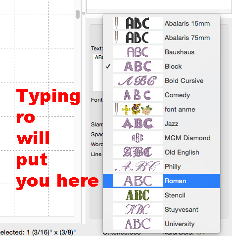 Some of you have a zillion mapped fonts. Great! But you have the long list to scroll through. Click the arrow to pop-up the list of fonts. Now, type the first few letters of what you're looking for.