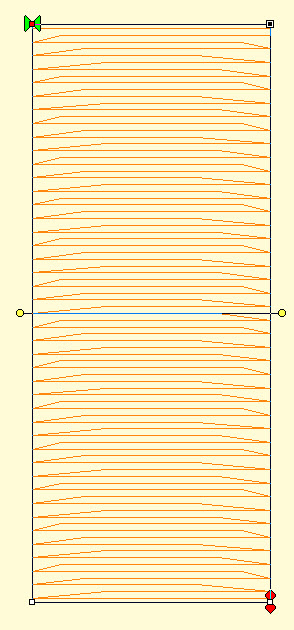 Left: A fill with the Exit bead midway in the fill. This causes the stitching to go from one side, then the other as shown in the center image, which is shown using the sewing simulator (in this image it has sewn below, and is now working its way down from the top).