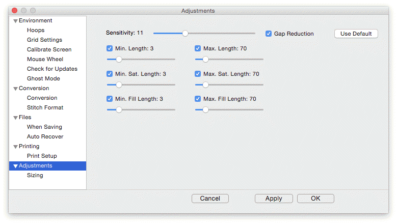 The sensitivity control is used to control how well the program discovers fills and satin stitches. If you have a design which has a lot of manually created stitch effects, then you may want the sensitivity higher, whereas normal designs that are digitized with objects like fills probably don’t need so much sensitivity, especially if there is blending going on.