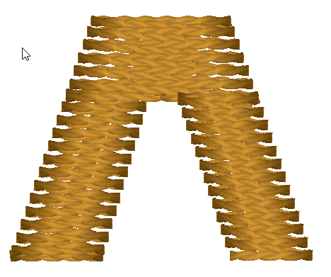 Letters often look better with a set of satin columns, rather than turning around hard angles. One method commonly used is with three satin columns: and entry, and end ‘cap’, and the exit stroke. A typical example is this letter ‘A’: