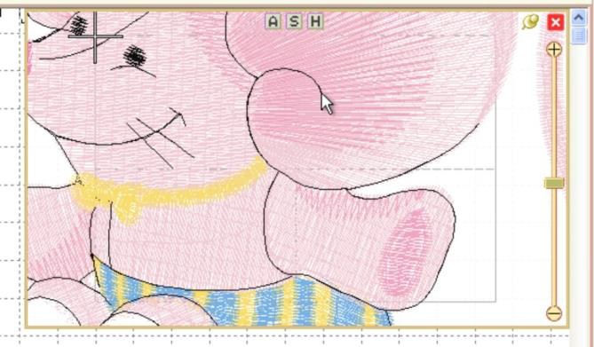 Notice on the top of the Nav H.U.D. are three small buttons labeled ‘A,’ ‘S,’ and ‘H.’ These buttons correspond to preset zoom settings of ‘All,’ ‘Selected,’ and ‘Hoop,’ whose keyboard shortcuts are respectively ‘A,’ ‘S,’ and ‘0.’