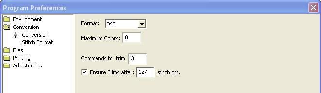 DST and EXP Files have a different type of information contained in them where it pertains to jump stitches. Rather, those formats have to have some number of “Jump” commands in a row before they will cycle their thread trimmer. When making a DST file, and converting from something else, these jump commands need to be translated. As machines differ in setup for the number of commands needed to cycle the trimmers, we offer this setting in the conversion preferences.