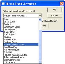 A thread brand can be selected on a per-design basis or can be made preferred.