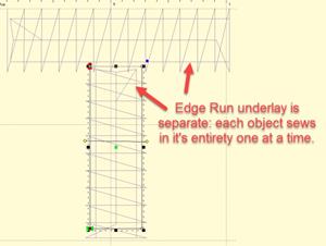 Objects that wholly contain other objects can produce unpredictable results, so don’t do that with branching. However, if single runs were used within a set of satins, then those will be discarded, as the branching operation will provide its own transition runs. Also, branching will not predictably discover objects within holes, so sequence those manually.