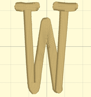 When making fonts, there are some basics that you need to understand. First, and most important, is that fonts and embroidery are not friends. Font designers get away with things that embroiderers cannot. Most notably, font designers have no restrictions on stroke width – or the variability of it. A glyph can have a super narrow column alongside a super fat column. Assuming that you’re making a satin font, the lettering sizes are restricted by these column widths. A minimum column width of 1.5mm is typical. A maximum width of 7, 8 or even 9mm is about the most you will want to use, in general circumstances. If your glyph has sections that are 7mm wide and sections that are 2 mm wide, you have sizing constraints. The answer to this problem is to make the font stroke thickness more regular. Embroidery font designers do this all the time, and that’s often for fonts designed for a specific size. If you’re making fonts that should be able to scale up or down, you need to pay more attention to that problem.