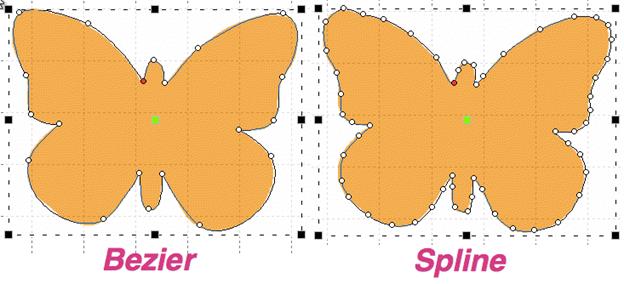 We have made the editing of outlines work in two modes, Bezier and Spline. To understand spline, imagine something flexible, but with a little bit of spring to it – in the original context a spline was a light piece of wood that could be shaped around things. In this use, it is a line that flexes around ‘Nodes’ on the screen (where you have clicked). The more clicks you give, the tighter the spline will have to bend in order to conform to the shape you want.