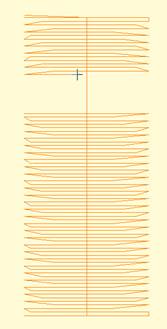 Left: A fill with the Exit bead midway in the fill. This causes the stitching to go from one side, then the other as shown in the center image, which is shown using the sewing simulator (in this image it has sewn below, and is now working its way down from the top).