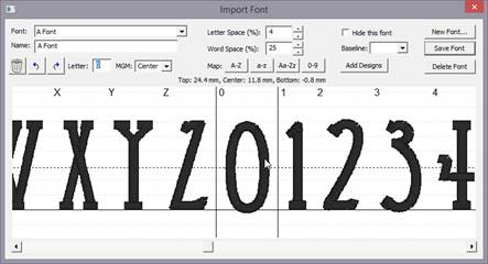If your designs are organized in some other order then you will have to manually type those keys to map the font. Select each letter, then type its key in the ‘Letter’ box.