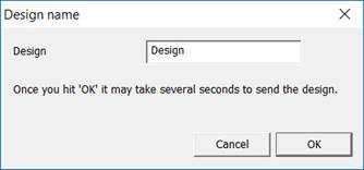 The design name will come from the design page name, but you will be given the opportunity to change it. Note that if the name matches a file on the machine, the name will get a (2) after it, or (3), etc. At present, there is no way to overwrite or delete a design file that’s on the machine.