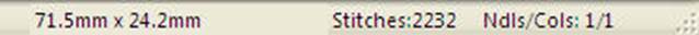 The status bar is located at the bottom of the program window. Size, stitch count and color count information appear on the right side of the status bar. If you have no design selected, then the display will contain information about the entire design page. If you have something selected, then the information contains the word, ‘Selected’ and represents only those selected items.