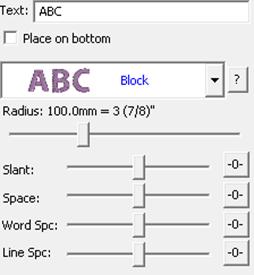 When writing on a circle, you have the option to put text either on the inside or outside; when embroidering, we usually think of this as text at the bottom or top of a circular patch or badge. To switch this, use the checkbox labeled “Place on bottom.”