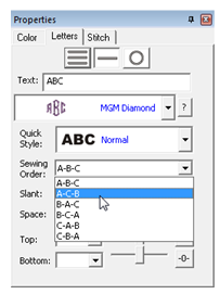 the Letters tab there is a Sewing Order box. Choose the order in which the