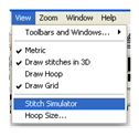 The Stitch Simulator lets you see how the design will sew out by sewing on the screen. It is activated by clicking the Stitch Simulator tool in the View tool bar or selecting Stitch Simulator from the View menu.