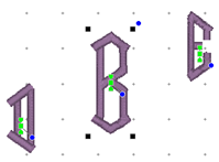 Clicking on the green center handle will display three additional handles. These handles give a wide range of control over the positioning of the letters. The handles work on the selected letter and all letters to the right of the selected letter. Let’s take a closer look at these handles: