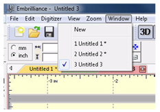 The Main View has a background, a hoop, and rulers along the side and, naturally, the designs you have placed in the Design Page.