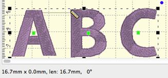 To cancel measuring, click again on the Measure button in the toolbar, or click the Selection Tool (arrow) in the toolbar. Items that are selected also have their size, stitch count, and color count shown in the status bar. If nothing is selected, then the size and counts for the entire Design Page will be shown.