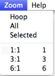 • From the Zoom menu specify what should be zoomed: the Hoop, All elements or the Selected element or choose the amount of zoom.