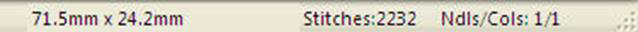 The status bar is located at the bottom of the program window. Size, stitch count and color count information appear on the right side of the status bar. If you have no design selected, then the display will contain information about the entire design page. If you have something selected, then the information contains the word, ‘Selected’ and represents only those selected items.