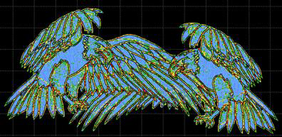 Where the design shows bright red in color, there are six layers or more of thread, which undoubtedly will produce poor embroidery results.