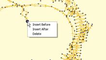 If you have a stitch selected, you can right-click to get a pop-up menu which will let you insert stitches.