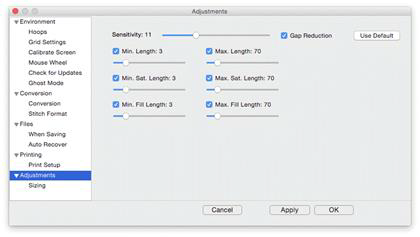 That recalculation process is complex and difficult, so there are some settings you can adjust to achieve optimal results. The sensitivity control is used to control how well the program discovers fills and satin stitches. If you have a design which has a lot of manually created stitch effects, then you may want the sensitivity higher, whereas normal designs that are digitized with objects like fills probably don’t need so much sensitivity, especially if there is blending going on.